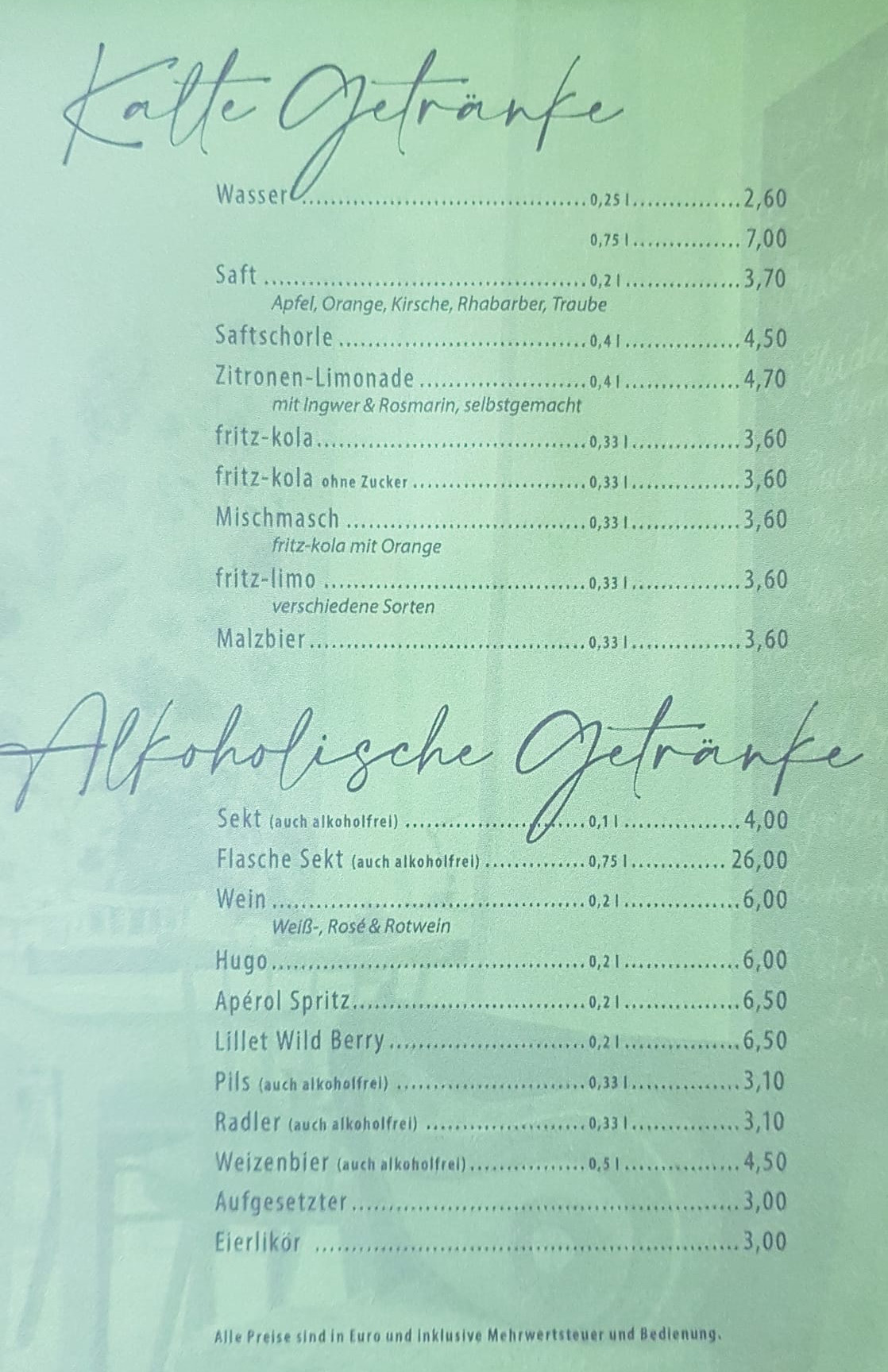 Unsere Speisekarte